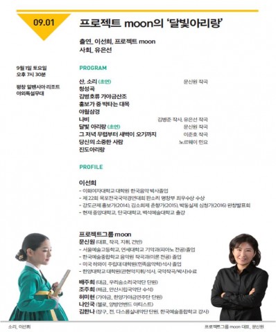 À̹ø °ø¿¬Àº °¡À»ÀÇ ¹®ÅÎÀ» ³Ñ¾î¼± Æòâ ¾ËÆæ½Ã¾Æ¿¡ °¡À»Á¤Ãë °¡µæÇÑ °ø¿¬ ¡®ÇÁ·ÎÁ§Æ® moonÀÇ ´Þºû¾Æ¸®¶û¡¯À¸·Î ÁøÇàµÉ ¿¹Á¤ÀÌ´Ù.